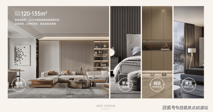 作为中建西南院2025新规战略作品,以更高使用效率重新定义舒适四房。建面约120-135㎡全系四房户型,配备智能收纳系统与灵活可变空间,完美适应家庭全生命周期的成长需求。
